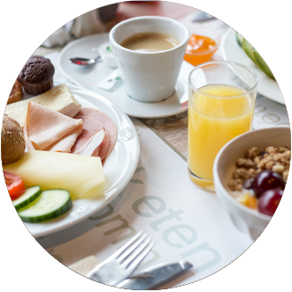 Voor onze gasten staat ‘s ochtends een uitgebreid ontbijtbuffet klaar. Gevarieerd en voor ieder wat wils. Ook wanneer u niet kunt kiezen!